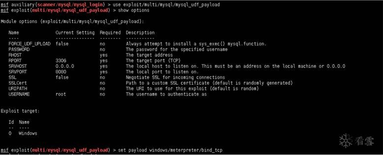 2.exploit/multi/mysql/mysql_udf_payload常用于root启动的mysql 并root的udf提权。
