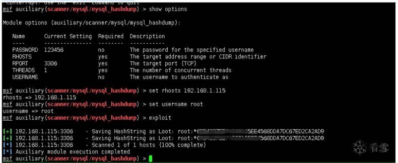 5.auxiliary/scanner/mysql/mysql_hashdumpmysql的mysql.user表的hash