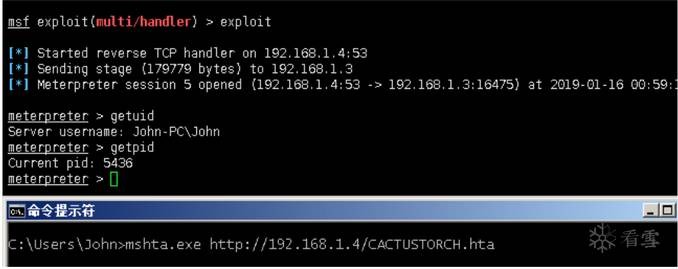 说明:Mshta所在路径已被系统添加PATH环境变量中,因此,可直接执行Mshta.exe命令。