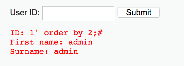 查询语句获取ID时,增加了单引号,所以这是个字符型注入,limit 1限制了只能查询一个结果,这个用注释#就可以绕过。