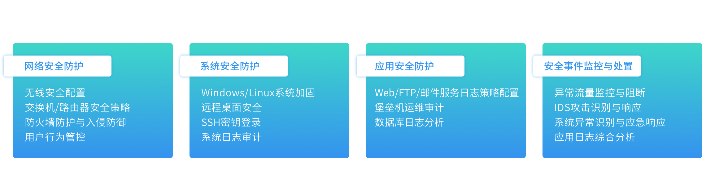 Windows/Linux系统安全配置、日志审计、远程访问管理,掌握系统级漏洞排查与修复能力,从源头杜绝安全隐患。