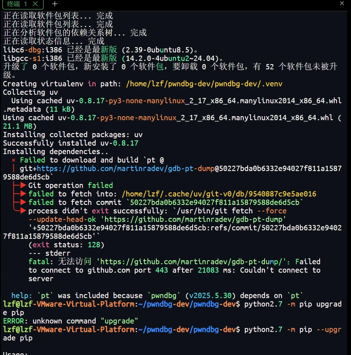 运行pwndbg里面的setup脚本的时候,一直报这个错误,应该怎么解决?